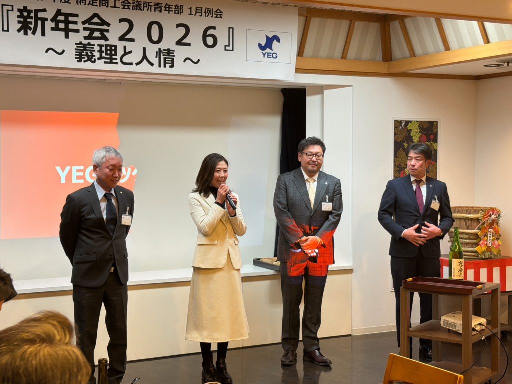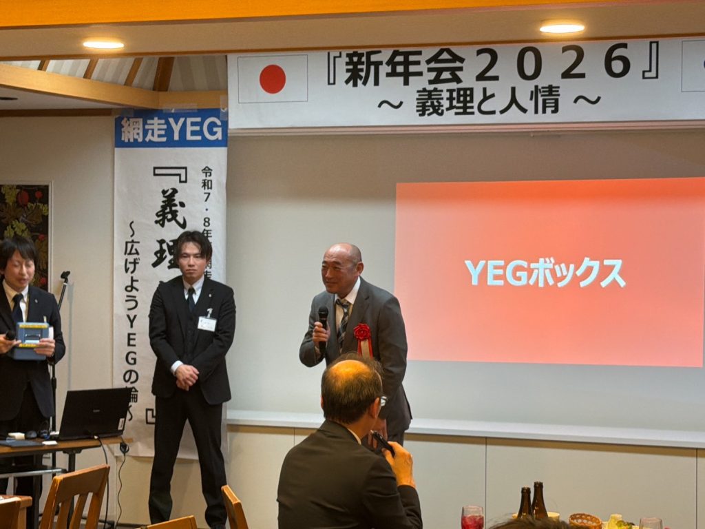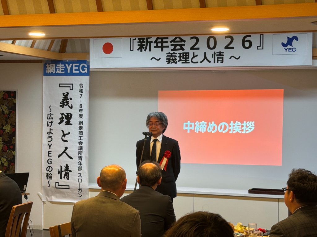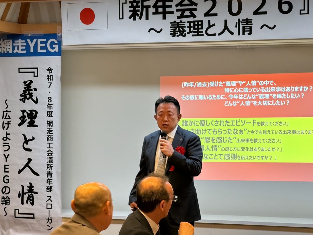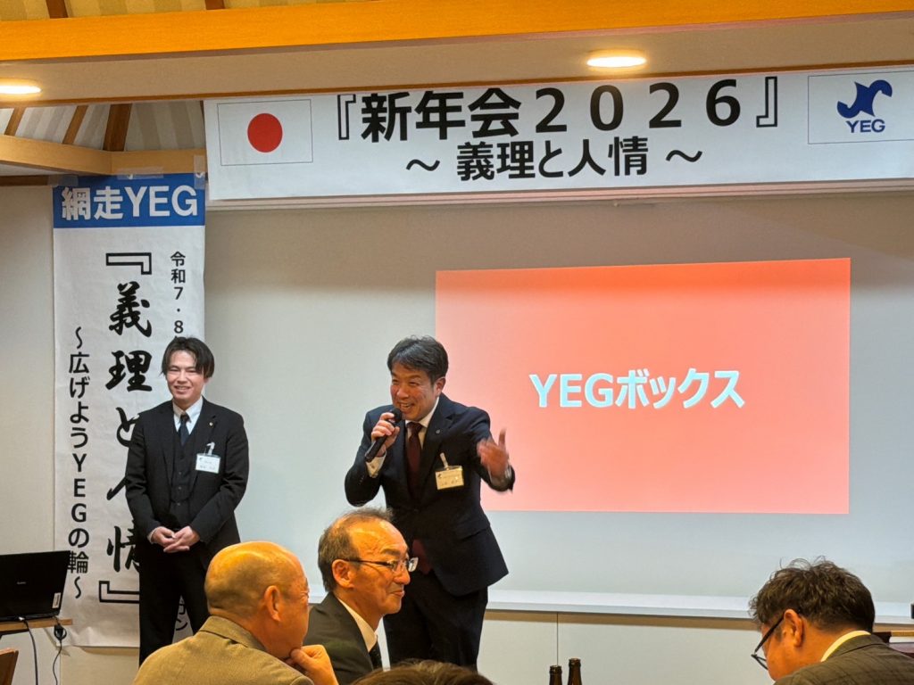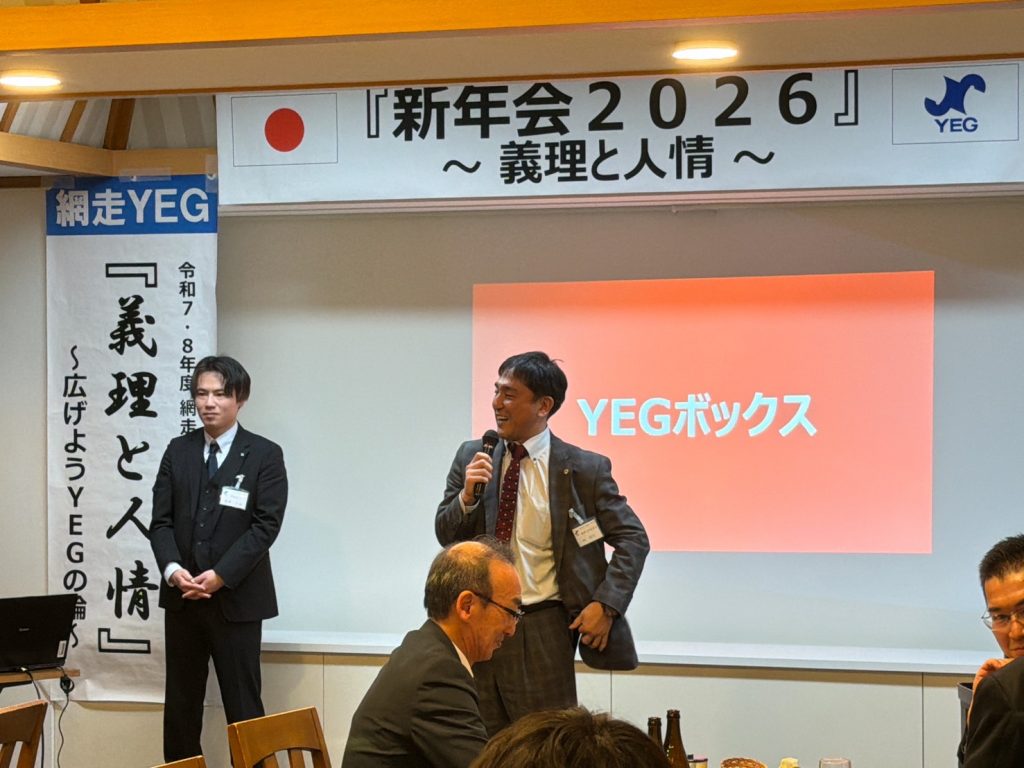 本例会は、ご来賓をお招きし、和やかな雰囲気の中で新たな門出を皆で祝うことができた。冒頭、ご来賓ならびに今野会長による鏡開きが行われ、網走YEGのさらなる発展と成長を祈願した。懇親会では余興として「名前ビンゴ」を実施し、名前を呼ばれた方には、本青年部のスローガンでもある義理と人情にまつわるエピソードや今年の抱負を語っていただいた。ゲームを楽しみながらも、ご来賓および会員相互の親睦と交流を深めることができ、今年一年の網走YEGでの活動に対する意識を高める有意義な機会となった。本例会を通じて、より一層の結束と団結を感じることができ、今後の活動への大きな弾みとなる例会となった。