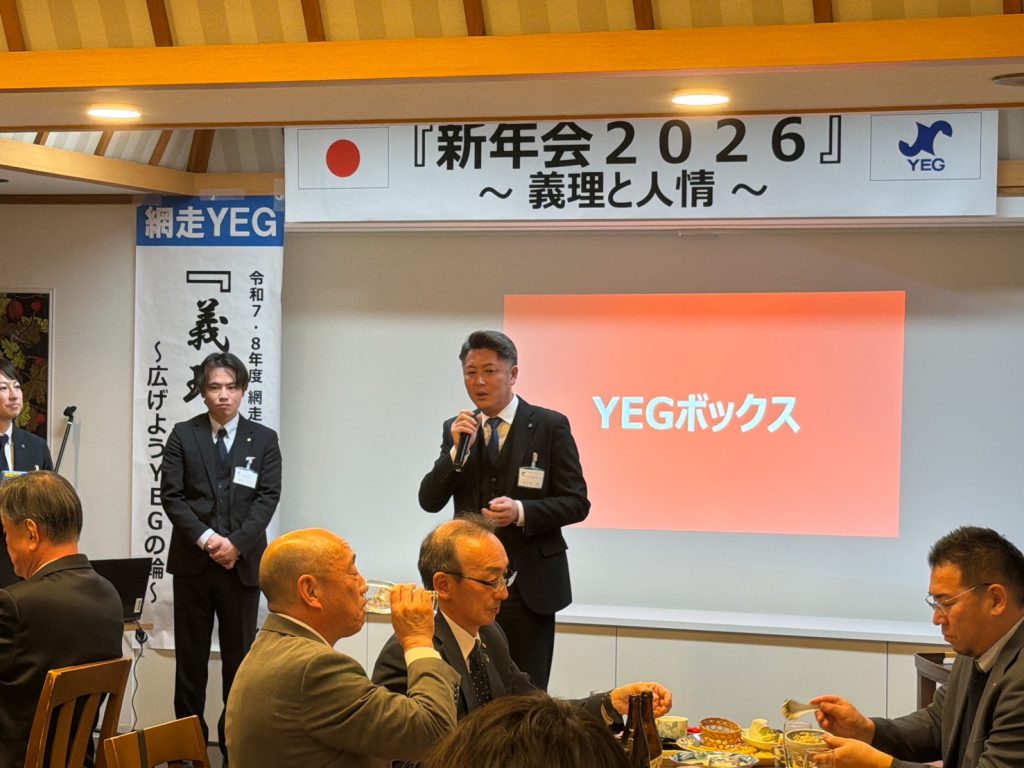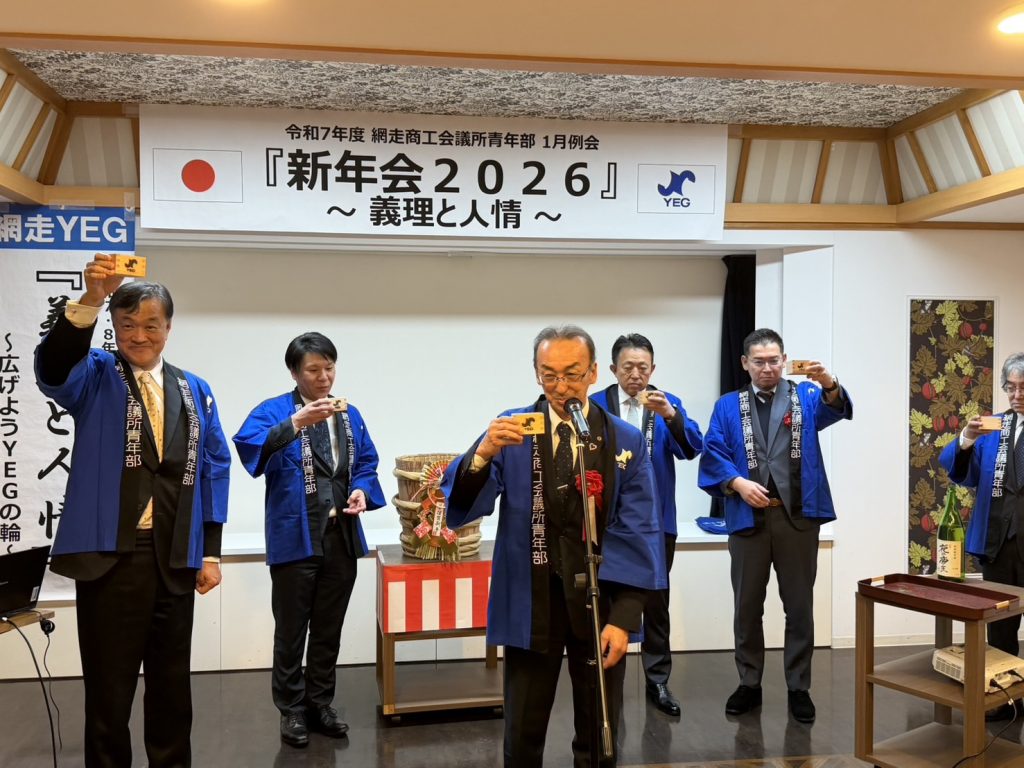 ご来賓をお迎えして共に新年の門出を祝い、網走YEGの更なる発展と成長を祈願する。また、ご来賓並びに会員相互の親睦と交流を深めることで、地域社会に貢献する青年経済人としての意識を高め、今後のより良いYEG活動に向けた結束を強めることを目的とする。